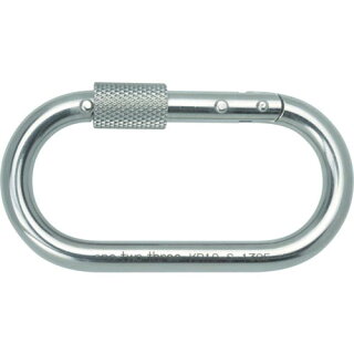 安全帯に使うものには外れ止め装置の耐力が1.0kNというのは、まず外れ止めとして「安全環」がついていることが条件となります。安全環というのは下の写真のように開閉部にスクリュー式のロック装置がついているものなどになります。