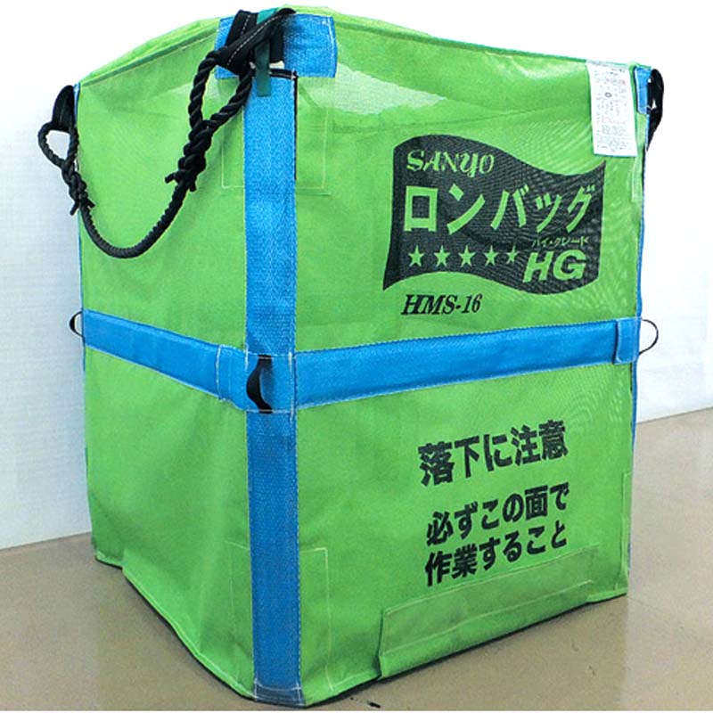 ロンバッグSPはスペシャルの略となります。メッシュタイプとPPタイプから選択でき、容量も幅広いサイズから選べます。自立補強はグラスファイバーポールを縦に入れてあります。吊り手にはシートベルト2重レベルの補強がされており、オプションであるL-1000という延長排出口をつけることで一般用乾燥機排出口になり一般対応となります。